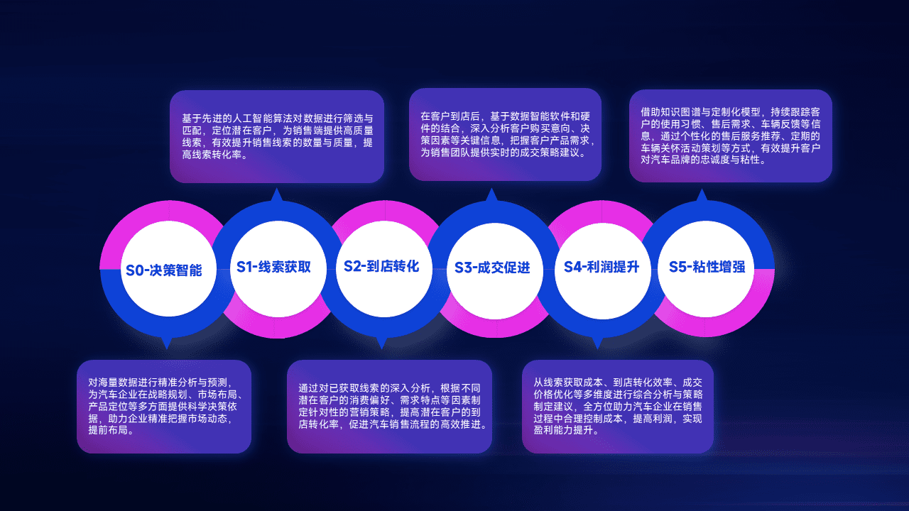 通过拓宽潜在客户来源、、、优化线索分配并提高到店转化率,,,以增强销售效率。。同时,,,利用线索数据不断优化分析模型,,,,有效提升转化率,,扩大营销影响力。。。